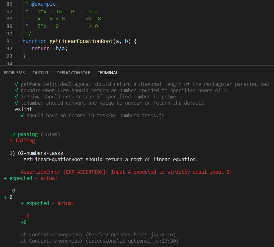 Hello. If i remove this check (b === 0), the result of the function will be -0 (minus zero). In this case the test with parameters a=5 and b = 0 fails.