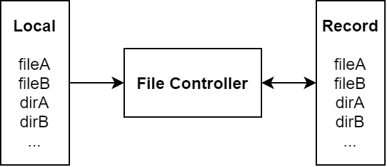File controller is one of the core components of this entire program. It will scan the local files information again and again to make sure the file record in the program is the latest. If it finds the modification of files, it will send the related event to other nodes. For example, if a directory is removed locally, then it will tell other nodes to remove this directory as well.