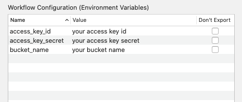 打开workflow的环境变量设置,在这里面可以设置workflow的环境变量。