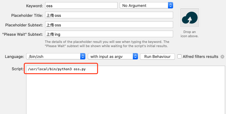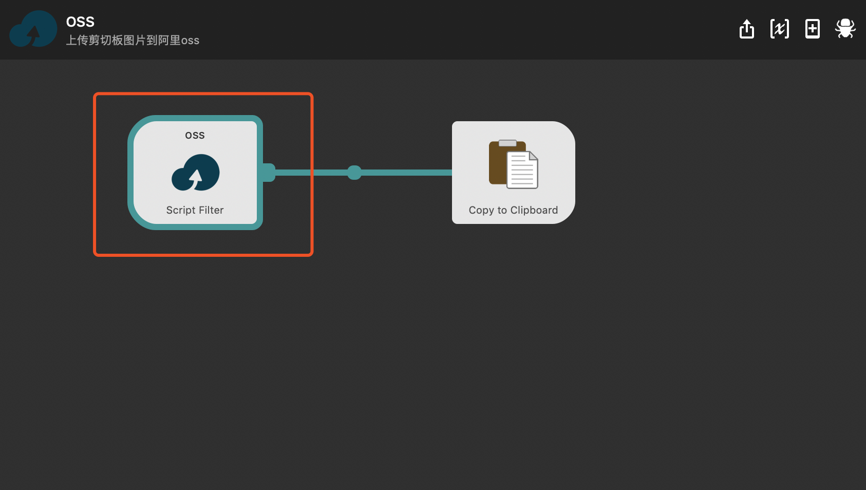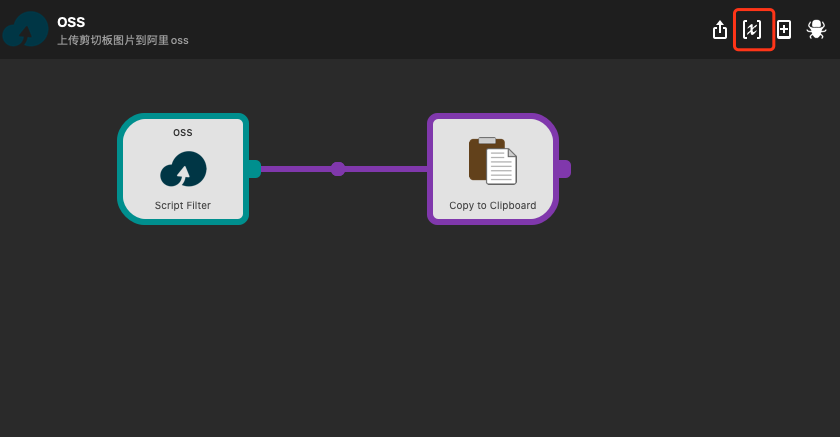 打开alfred,找到oss的workflow,双击下图的脚本图标