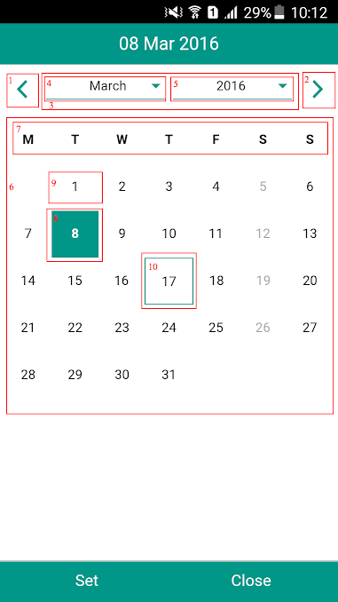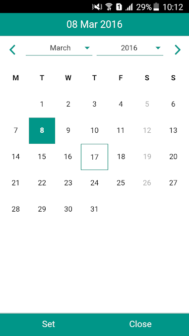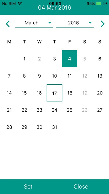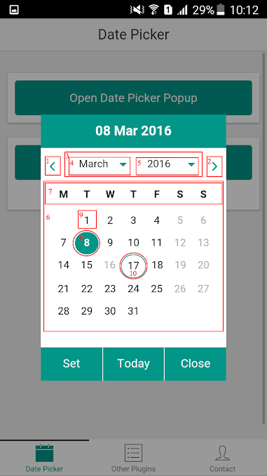 o) closeOnSelect(Optional) : Boolean to indicate whether date picker popup/modal will be closed after selection. If set to true