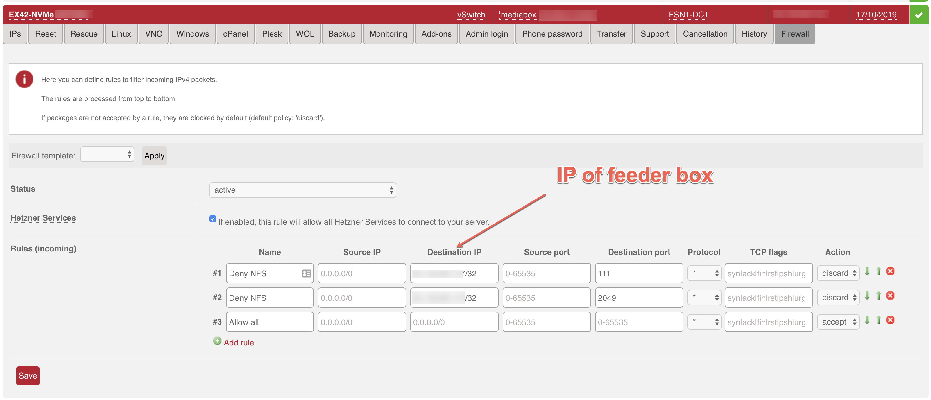 In this example, we'll set our Feederbox as the NFS server and our Mediabox as the NFS client - this is so that the feeder data can be available to the media server.