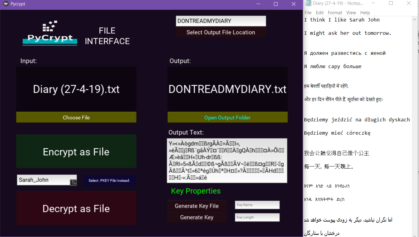 Cross Platform Encryption Application, that allows you to encrypt text or entire files, using a self made two way symmetric key encryption algorithm. Frontend implemented using Kivy.