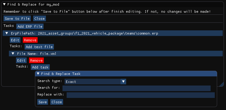 - A new window will pop up, showing a list of find & replace tasks. Click "Add ERP file" to create your first task.