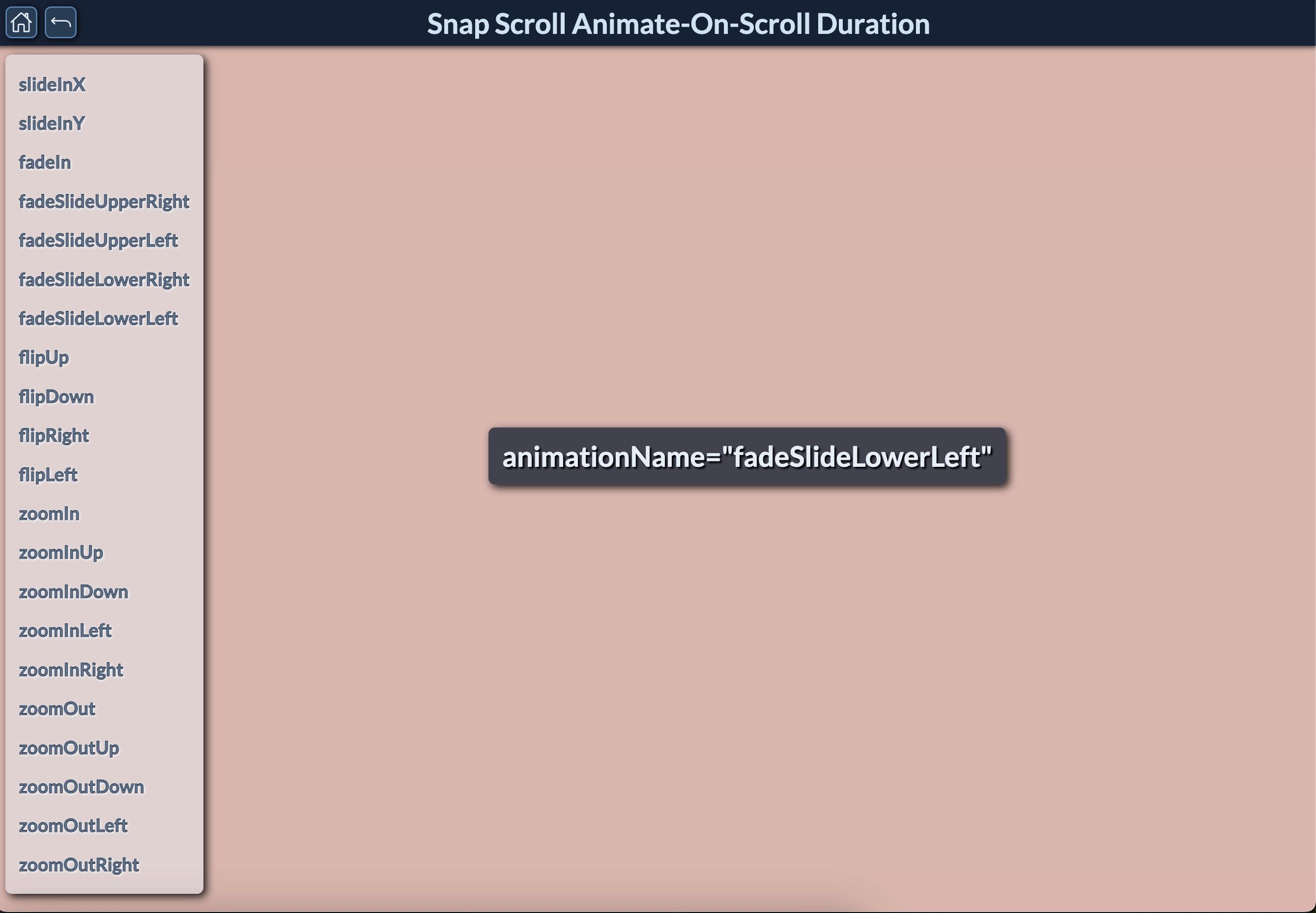 Figure 16: π Snap Scroll Animate-On-Scroll Duration - This image demonstrates the Snap Scroll Animate-On-Scroll feature, with customizable animations triggered as users scroll through the content.