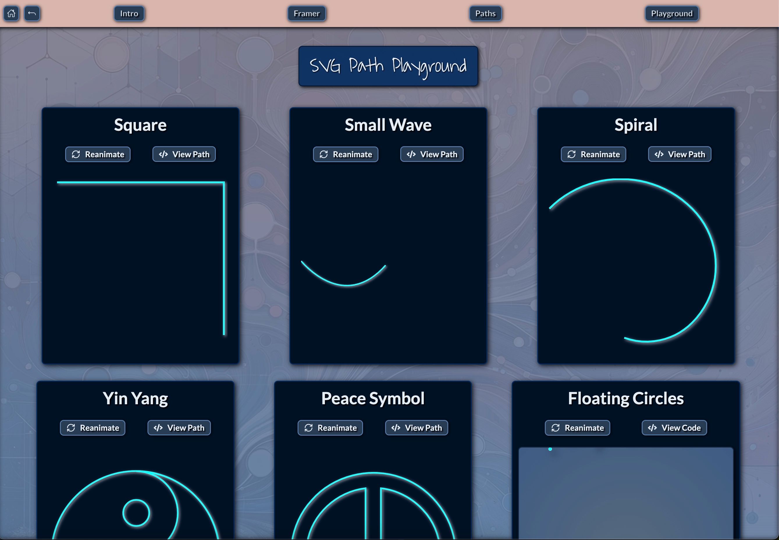 Figure 26: π SVG Path Playground - This image features the SVG Path Playground, a dynamic tool for experimenting with and animating SVG paths.