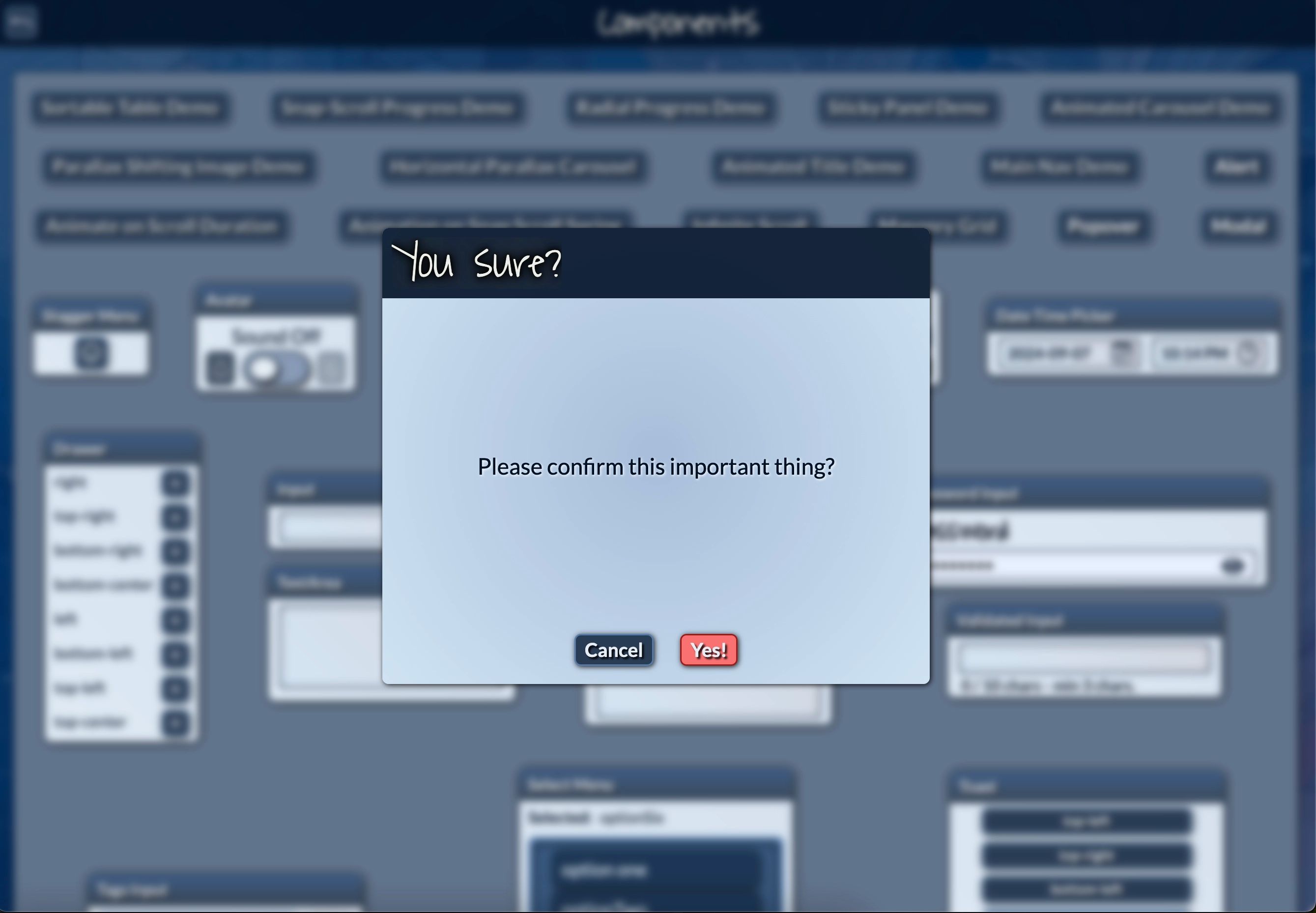 Figure 15: π Confirmation Alert Demo - This image displays a confirmation alert example, offering a simple yet effective way to manage user interactions for critical actions.