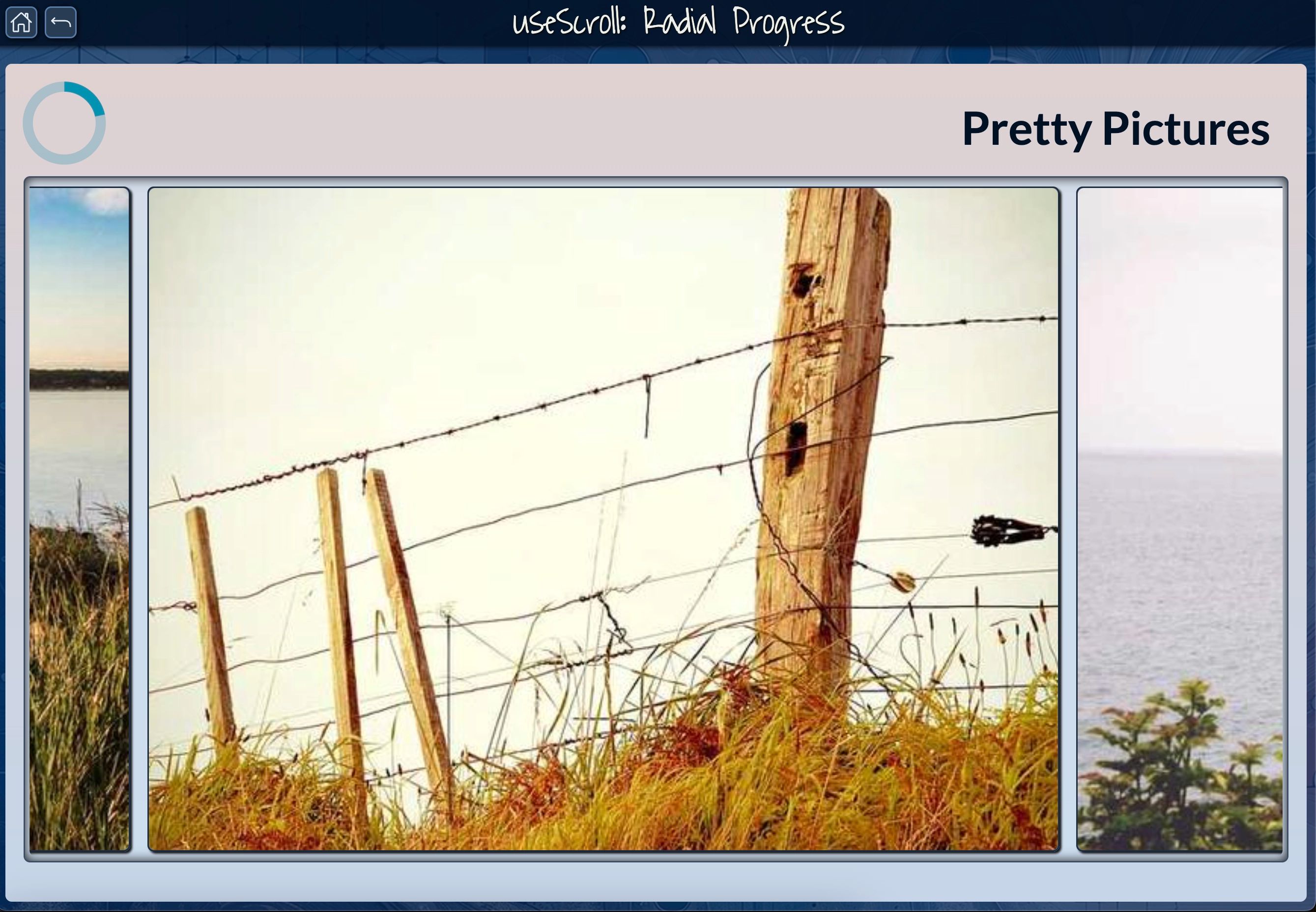 Figure 9: π useScroll: Radial Progress - This image demonstrates the radial progress feature tied to scrolling interactions.