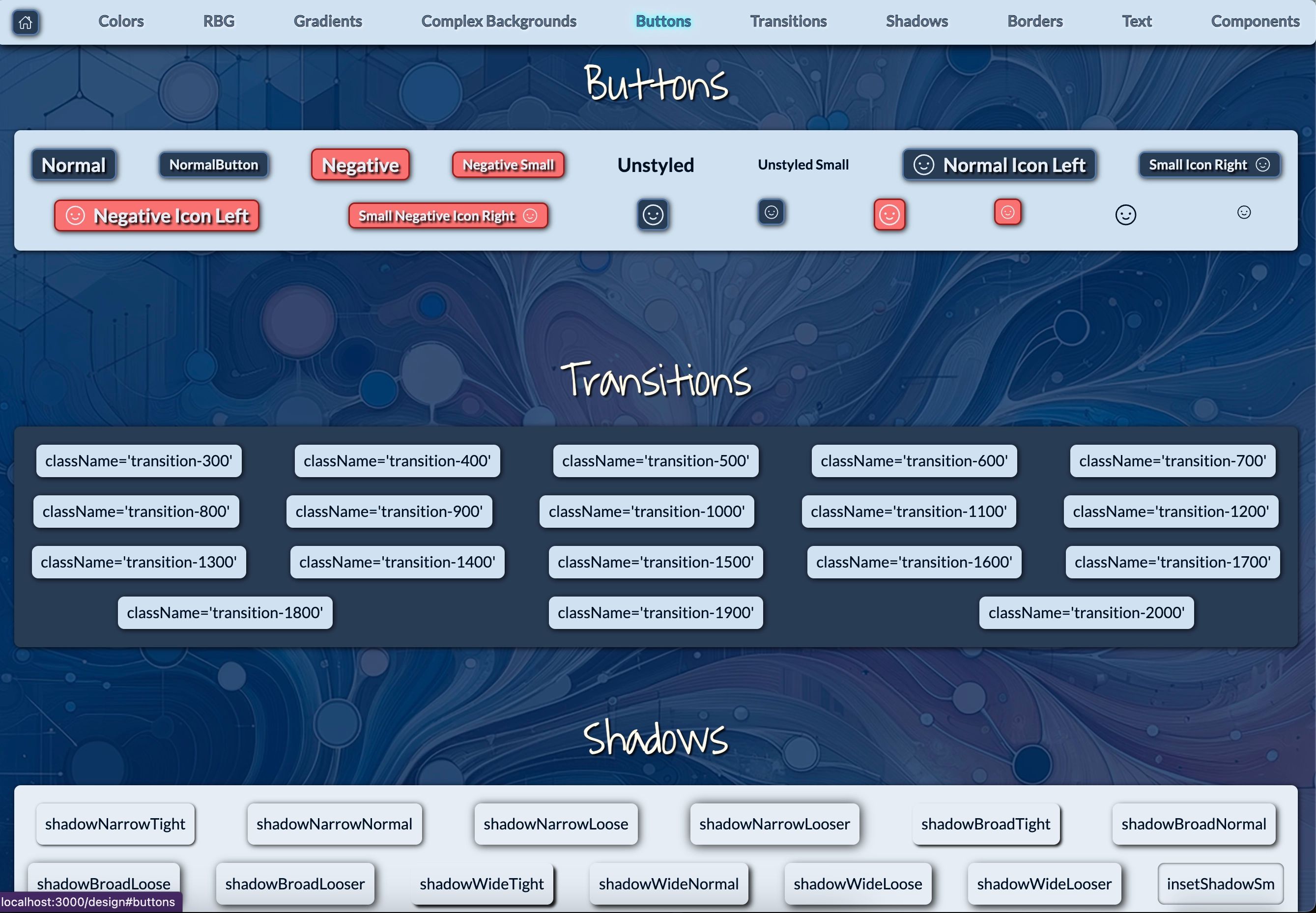 - Interactive Buttons and Shadows: Pre-designed button variations, including icon and negative buttons, alongside transition effects and shadow classes for adding depth and hierarchy. (See Figure 5 below.)