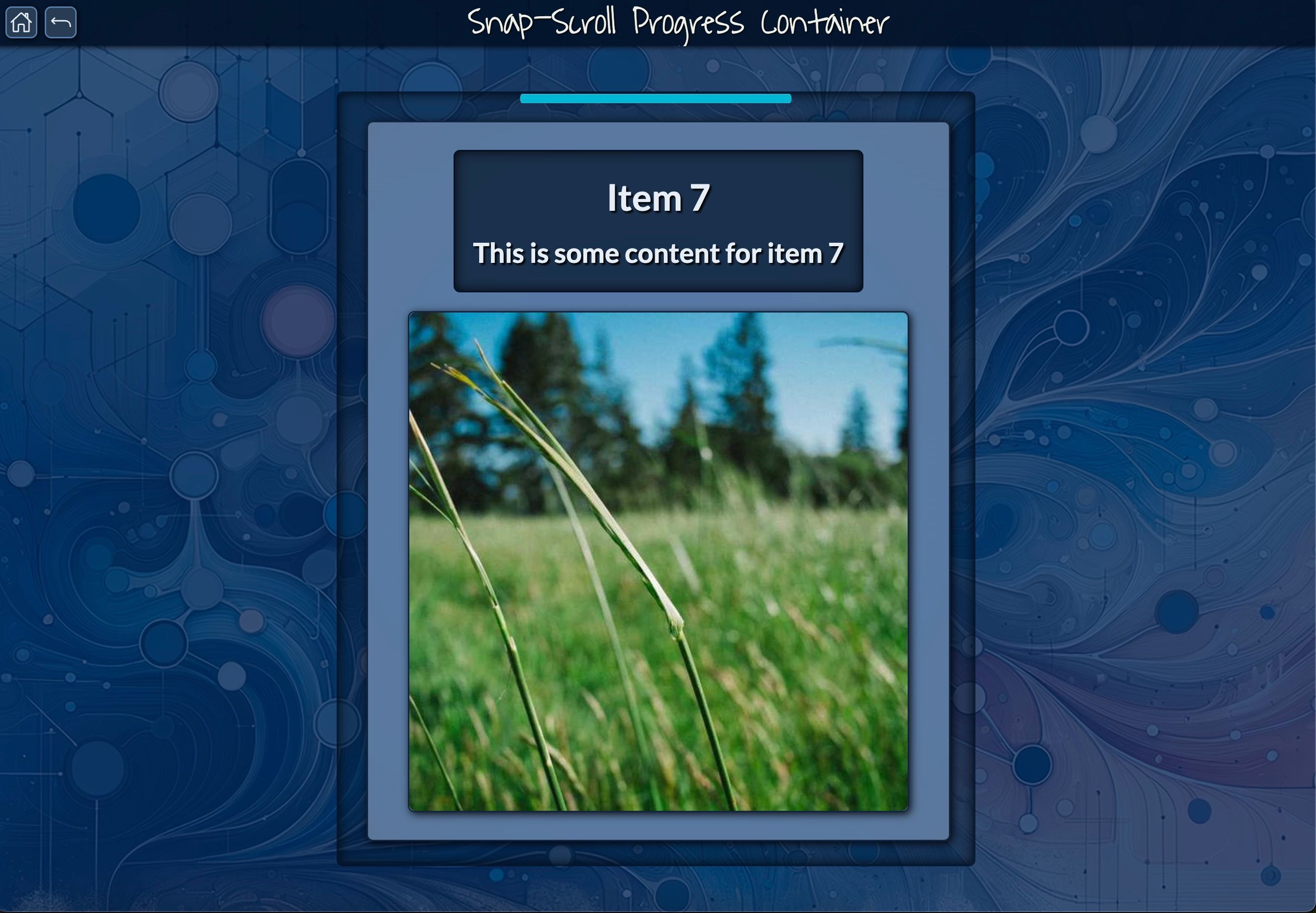 Figure 12: π Snap-Scroll Progress Container - This image highlights the Snap-Scroll Progress Container feature, where users can navigate through content sections with a smooth, snapping scroll effect.