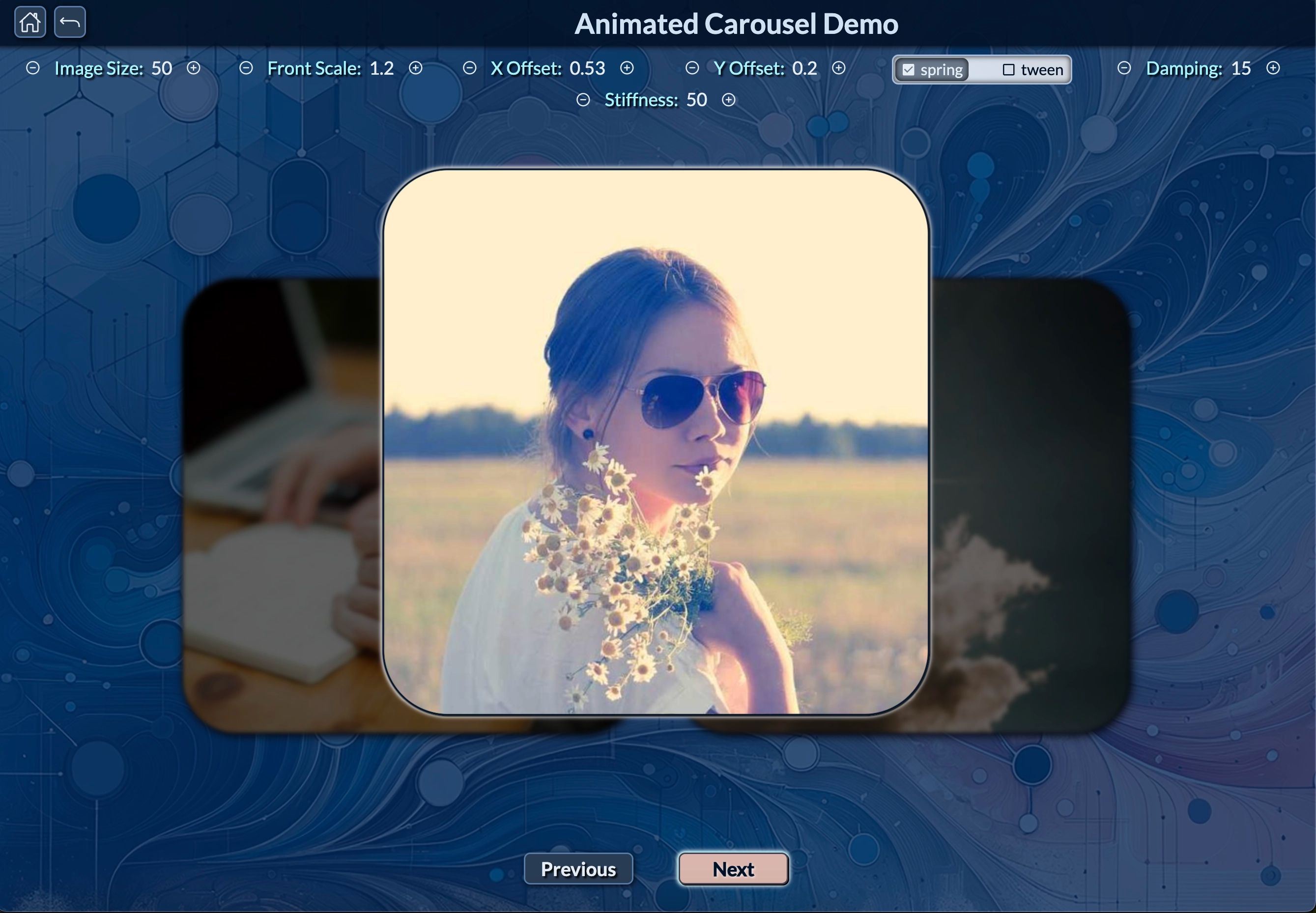 - Horizontal Parallax Carousel: Create dynamic scrolling effects where foreground and background elements move at different speeds. Perfect for image galleries or product showcases. (See Figure 13 below.)