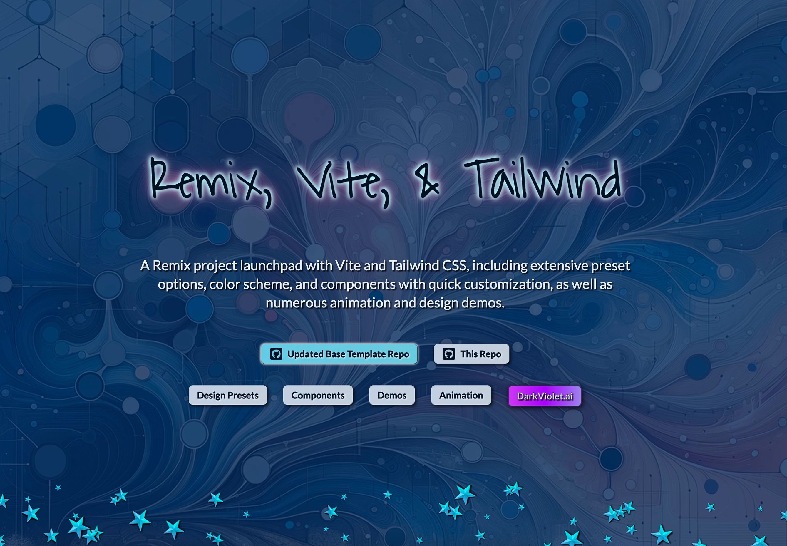 This Remix-Vite-Tailwind template, enriched with advanced animations and design utilities, is the perfect foundation for your next project. With a clean and scalable structure, powerful styling tools, and dynamic animations, you'll be ready to build stunning, high-performance web applications.