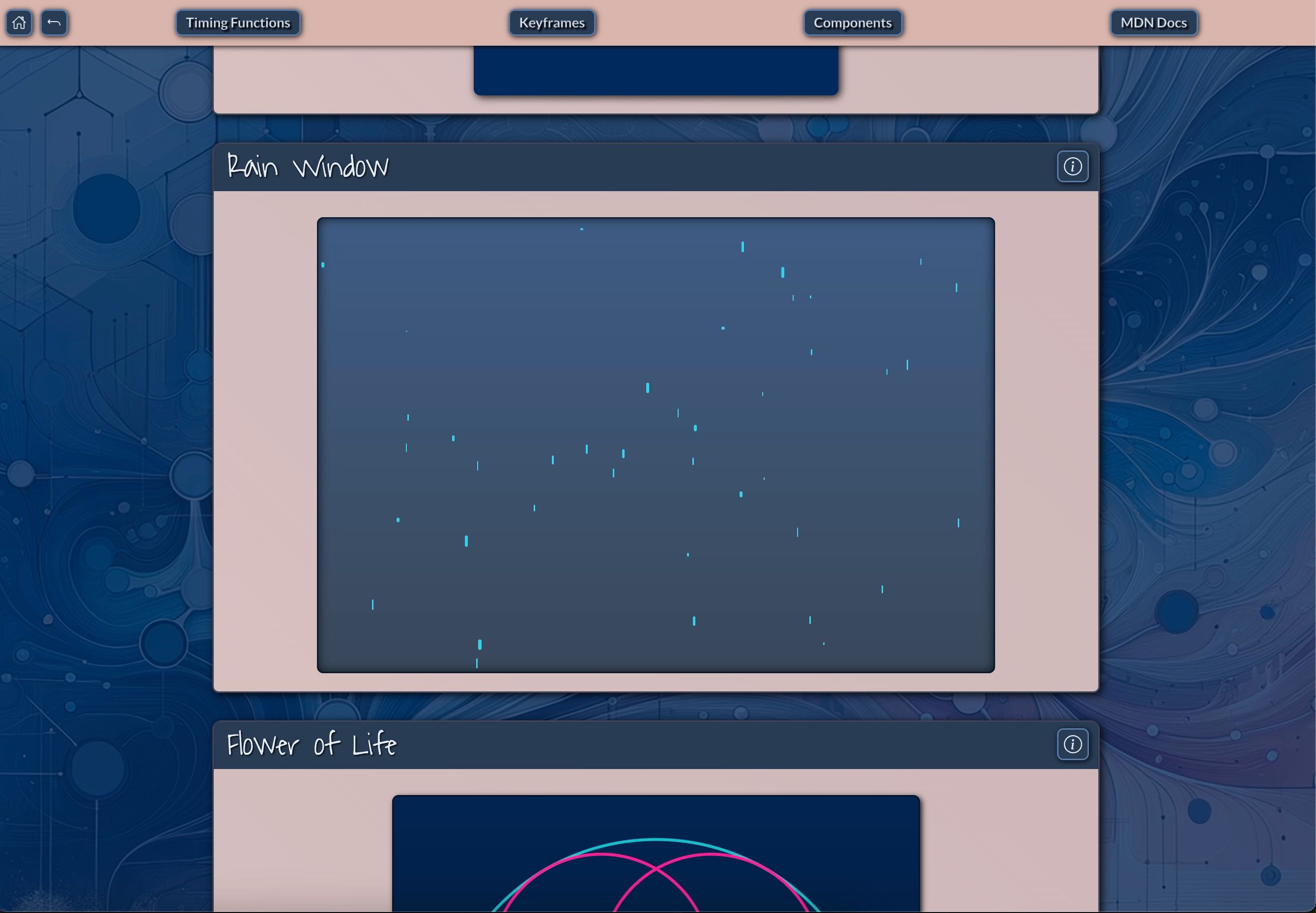 Figure 22: π Rain Window Animation - This visual showcases a Rain Window animation, where animated raindrop-like particles simulate rainfall on a screen.