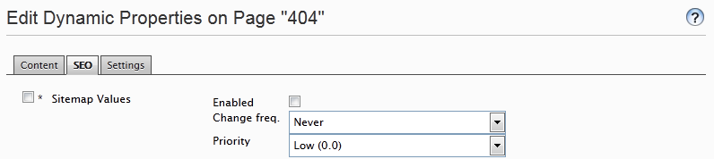 </configuration>You can specify page specific sitemap properties (like change frequency, priority or include/disinclude the specific page in any sitemap) for each EPiServer page by defining a dynamic property with type SEOSitemaps (and the same name):