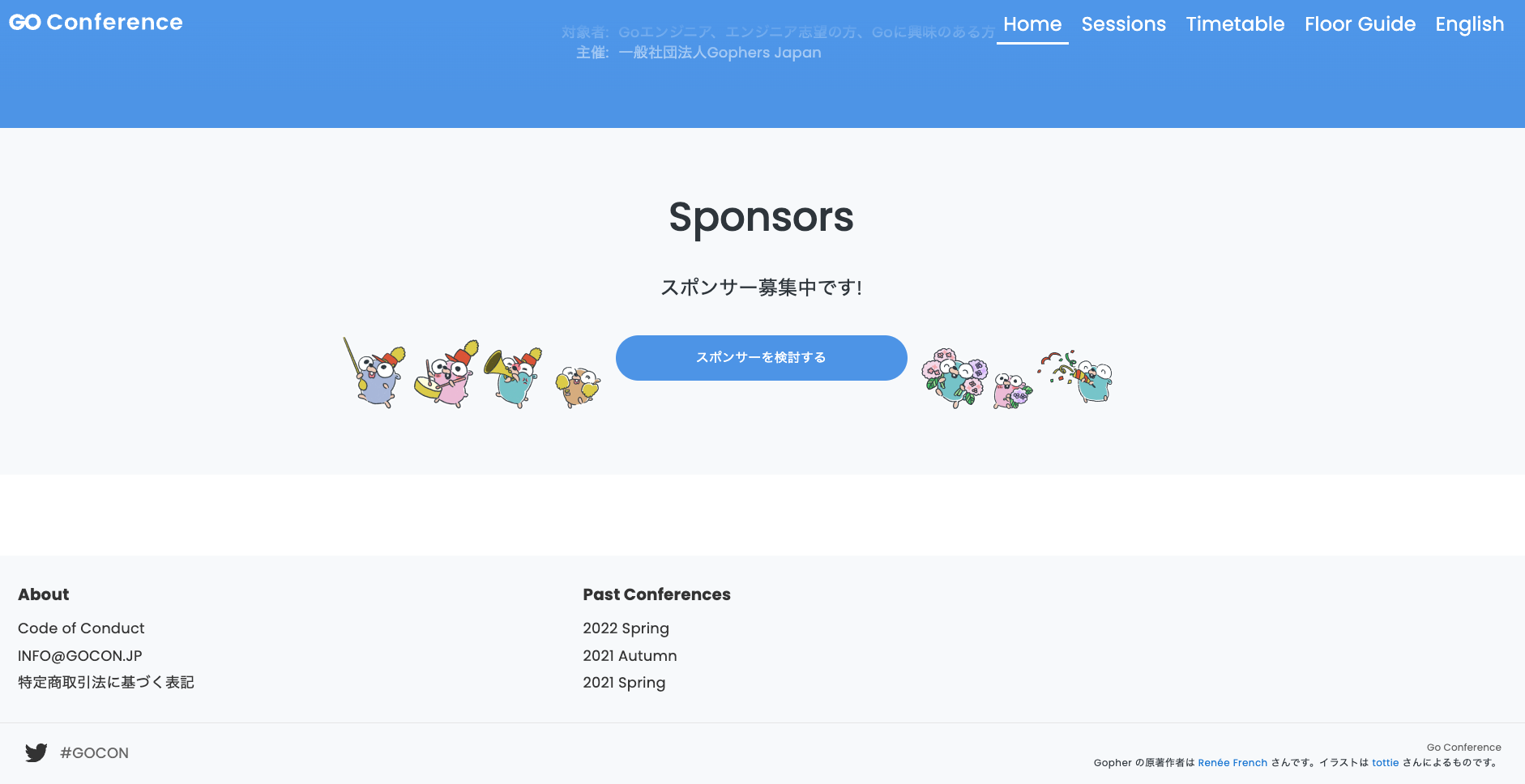 * [fix] Fix date for closing application from Sat to Tue (#65) * feat: add GitHub template (#68) * fix: template (#69) * fix: file structure (#70) * merge main into develop (#72) * [fix] Fix date for closing application from Sat to Tue (#65) (#66) * feat: community booth section (#67) * feat: specified commercial transaction (#71) * feat: specified commercial transaction * fix typo * fix: i18n locale * fix: english explanation --------- Co-authored-by: Taiga KIYOKAWA <[email protected]> * Merge main into develop (#169) * [fix] Fix date for closing application from Sat to Tue (#65) (#66) * feat: community booth section (#67) * feat: specified commercial transaction (#71) * feat: specified commercial transaction * fix typo * fix: i18n locale * fix: english explanation * feat: add information about CfP result (#165) --------- Co-authored-by: Taiga KIYOKAWA <[email protected]> * feat: useSessionize (#171) * feat: useSettionize * add EOL * スポンサー(パートナー)ページの実装 (#170) * feat: partner page * SAMPLE json / images * fix: `desc` to `description` * fix: simplify prop type name * fix: `desc` to `description` * fix: extract params from context * feat: header with link (#172) * chore: Remove CommunityBoothSection from PageTop (#174) * chore: Temporarily change links of Header to the links to HTML pages build by Sessionize (#173) * chore: Remove `next/link` temporary for forwarding to HTML pages build by Sessionize * chore: Temporarily change links of Header to the links to HTML pages build by Sessionize * fix(HeaderMenu): Use `next/link` when href is `/` * Proposal feat: hide home label from header (#175) * feat: hide home label from header * fix header menu * comment out unused import * fix: remove community booth section (#177) * feat: community booth section (#67) * fix: remove community booth section * chore: add eslint rule (#178) * feat: community booth section (#67) * fix: remove community booth section * chore: add eslint rules * chore: Close sponsors application (#180) * chore: Remove the button for application to sponsors due to be already closed * chore: Fix arrangement of Gophers due to remove the button * chore: Change description to "Sponsors application has been closed.~" --------- Co-authored-by: sivchari <[email protected]> Co-authored-by: maito1201 <[email protected]> Co-authored-by: Shinji Nakamatsu <[email protected]>