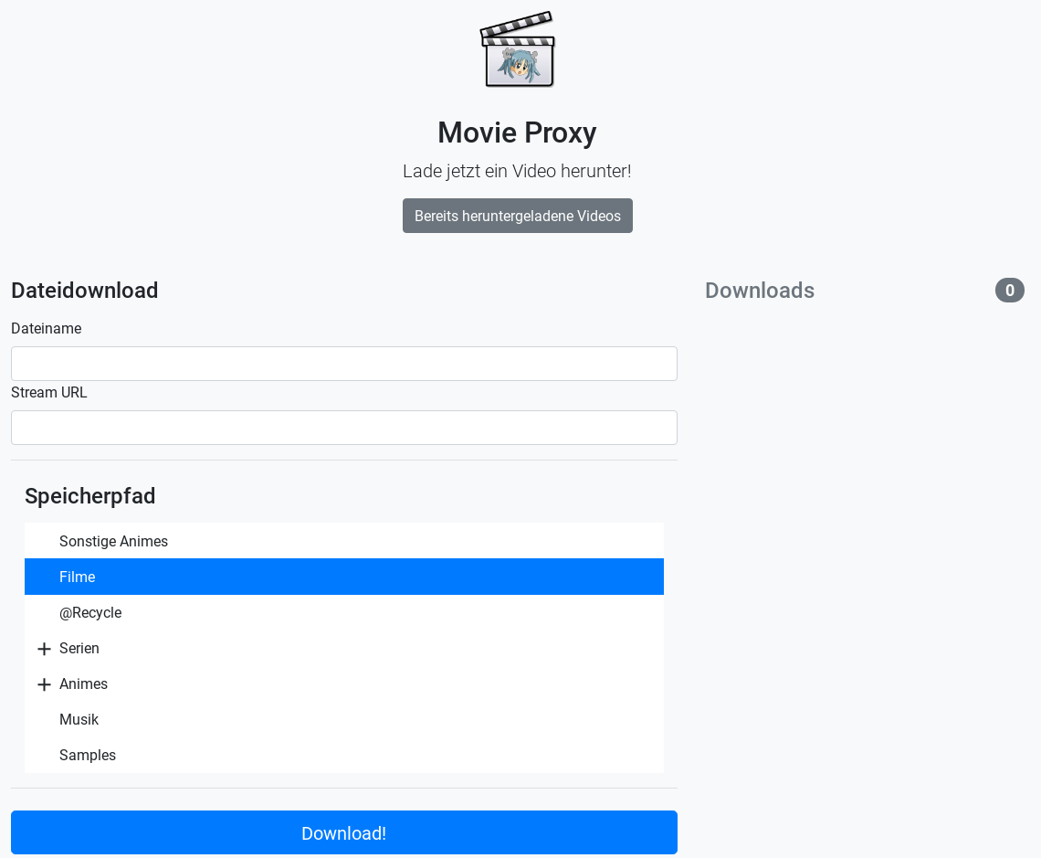 MovieProxy ist eine Webapplikation zum Selbst-Hosting mit der Möglichkeit, Videos gleichzeitig herunterzuladen und anzuschauen.