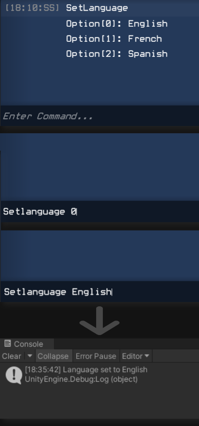 This Unity tool allows you to easily create a console and execute commands for your game in Unity. fast, easy and powerful.