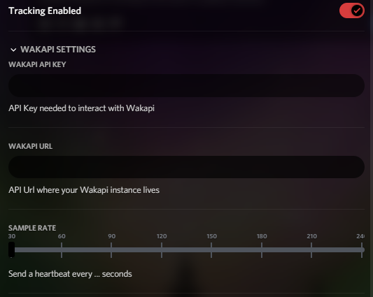Fill in you Wakapi API Key and Url in these fields. If you supply no API Key, the plugin won't start.