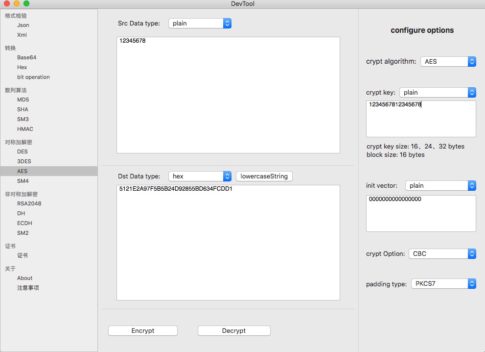 编码转换、摘要(hash)、加解密(MD5、SHA1、SHA256、SHA3、SM3、HMAC、DES、3DES、AES、SM4)