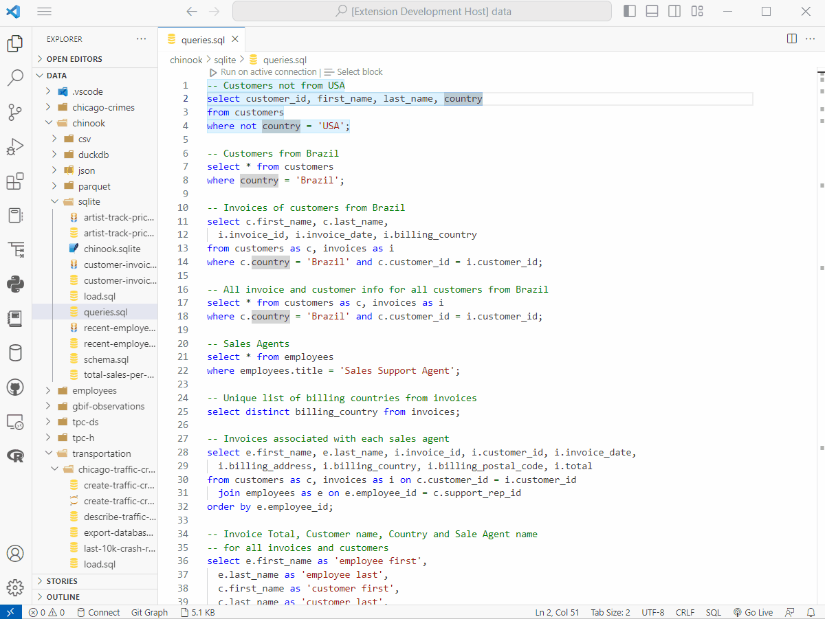 Our Pro Data Tools π οΈ include DuckDB Pro Tools extension that adds advanced DuckDB connection features and support to VSCode IDE, and provides database schemas display, DuckDB extensions and settings views, information schema and catalog views, SQL query API and user interfaces integrated with the popular SQL Tools extension, SQL query editor, SQL language server, and VS Code data processing tools.