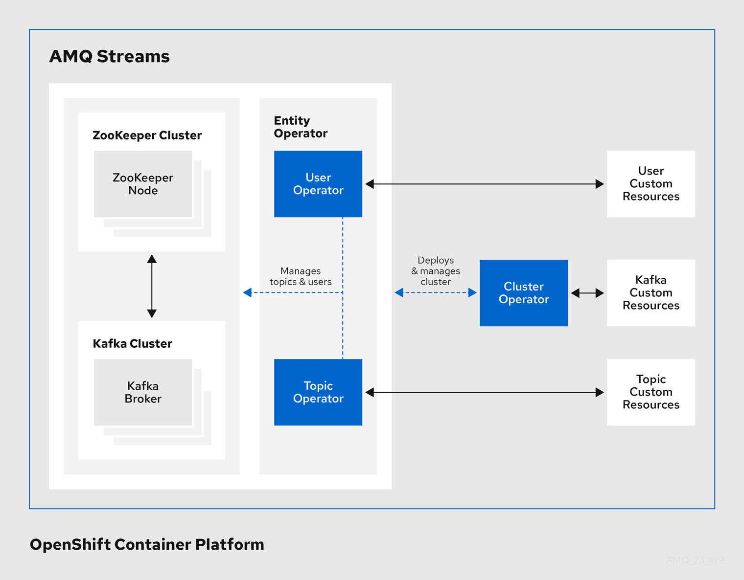 AMQ streams, a Red Hat Integration component, makes Apache Kafka “OpenShift native” through the use of powerful operators that simplify the deployment, configuration, management, and use of Apache Kafka on Red Hat OpenShift.