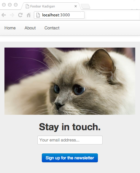 The application uses the high_voltage gem for the “About” page. Additional pages can easily be added. The high_voltage gem makes it easy to add pages with static content (text that doesn’t change) incorporating elements of a site-wide application layout such as header, navigation links, and footer.