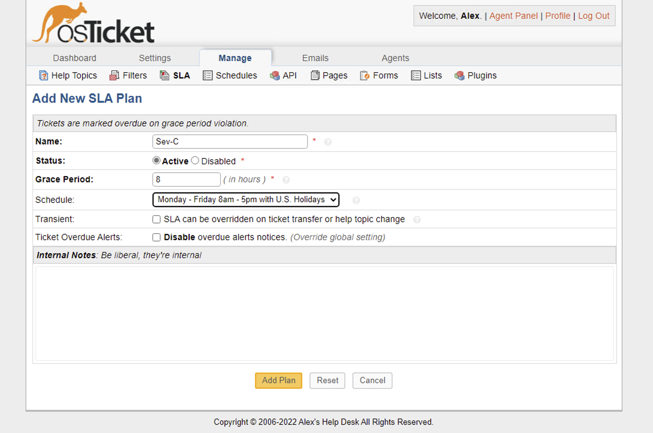 Admin Panel -> Manage -> SLA.