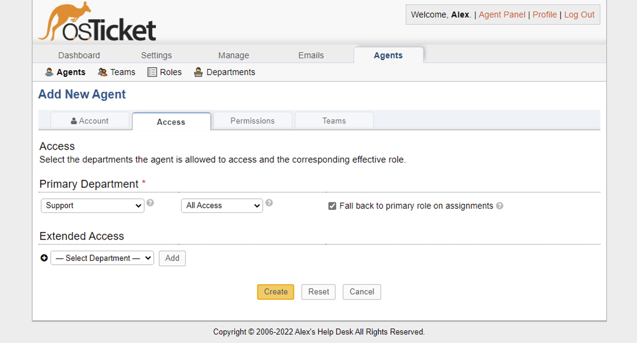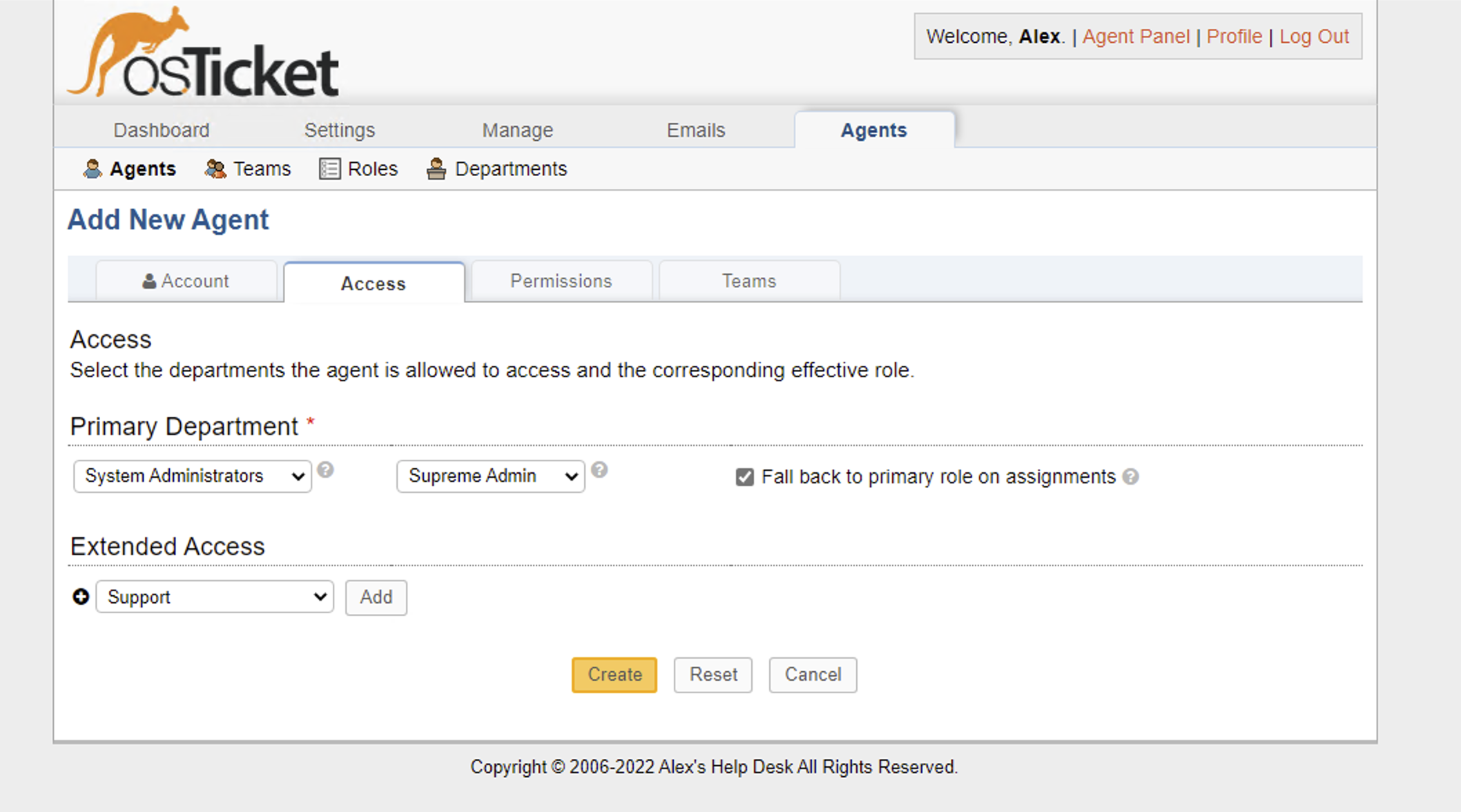 Admin Panel -> Agents -> Add New.