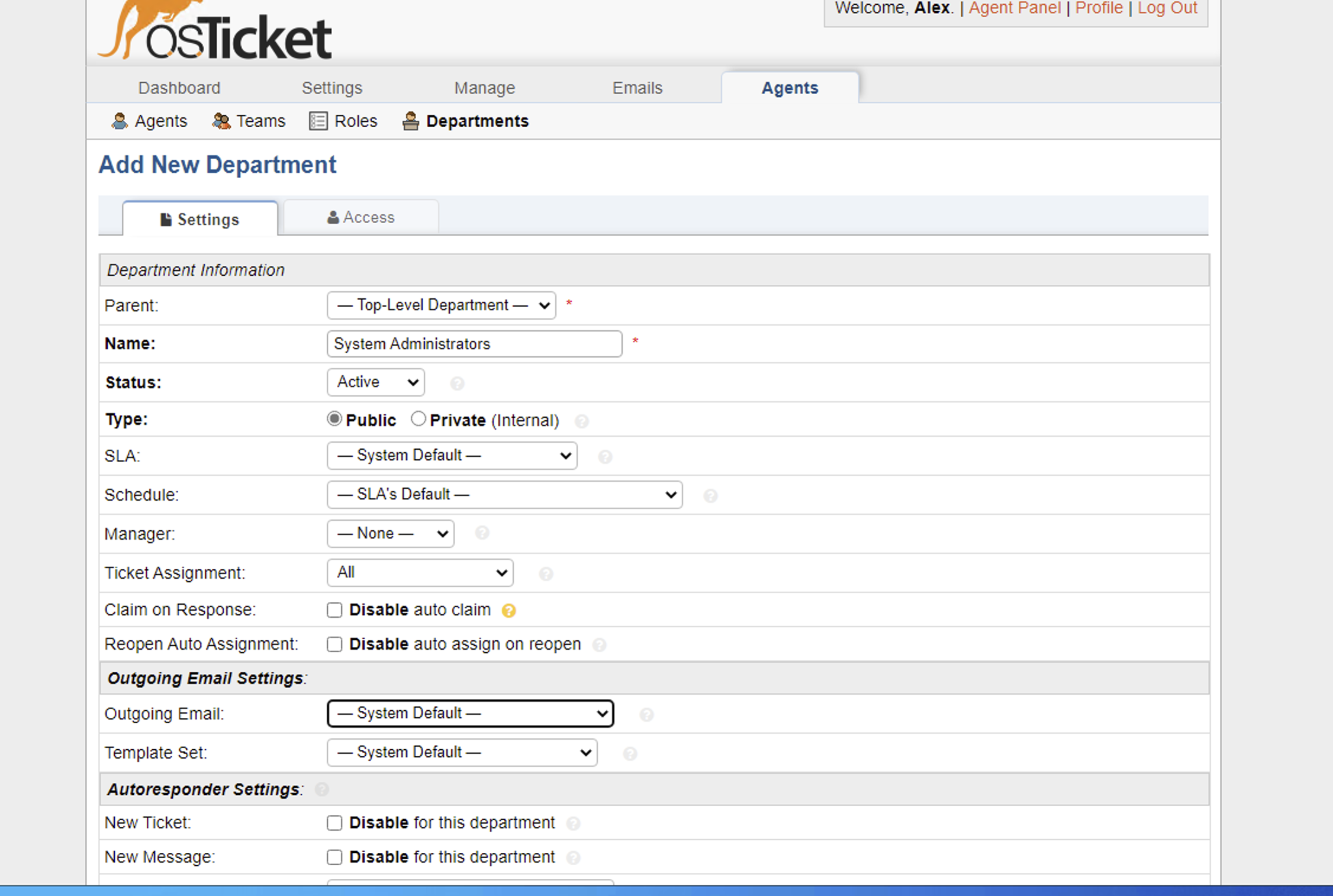 Admin Panel -> Agents -> Departments.