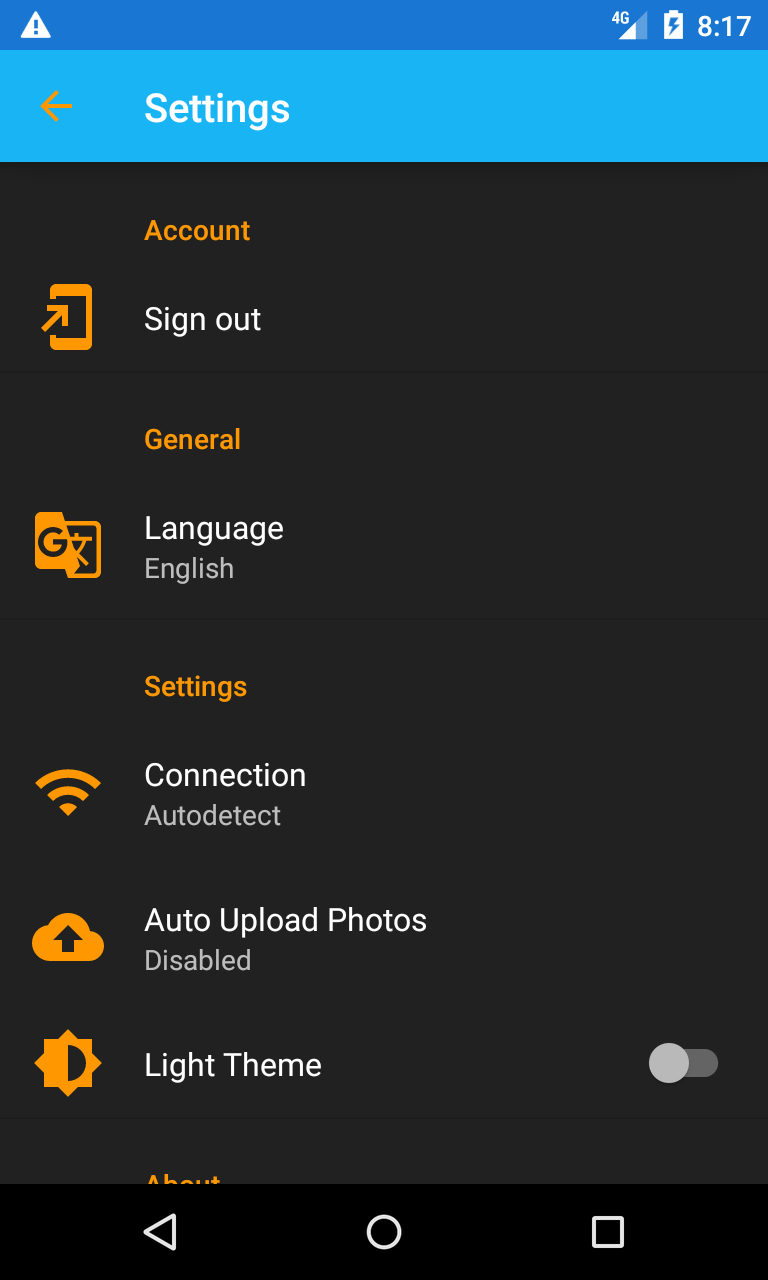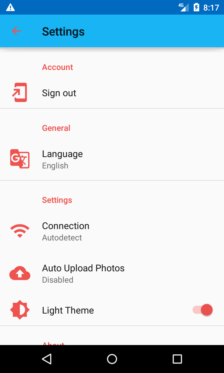 commit a721c61 Author: Akash-Ramjyothi <[email protected]> Date: Wed Jul 29 21:22:02 2020 +0530 Add Icons to Settings Activity (amahi#585) * Added Material Icons * Update Settings logos * reformat code Co-authored-by: Chirag Jain <[email protected]> commit 7eab1ea Author: Chirag Jain <[email protected]> Date: Wed Jul 29 17:07:51 2020 +0530 Update minSDK version (amahi#583) commit 2bd3f3b Author: Chirag Jain <[email protected]> Date: Wed Jul 29 16:40:47 2020 +0530 gitignore (amahi#581) commit bbcf8cf Author: Chirag Jain <[email protected]> Date: Wed Jul 29 16:40:15 2020 +0530 update travis (amahi#578) commit f252553 Author: Chirag Jain <[email protected]> Date: Wed Jul 29 16:39:27 2020 +0530 Add Custom Tabs to WebView (amahi#573) * Add Custom Tabs to WebView * Add License and theme to CustomTabs commit 6d1e357 Author: Chirag Jain <[email protected]> Date: Wed Jul 29 16:25:15 2020 +0530 Add Repeat and Shuffle Feature to Music Player (amahi#576) * feat: music player shuffle and repeat features * clean code * enable multidex * Reset Exoplayer to 2.7 * Update Multidex * remove multidex Co-authored-by: Balaji R <[email protected]> Co-authored-by: Carlos Puchol <[email protected]> commit f3035ff Author: Akash-Ramjyothi <[email protected]> Date: Wed Jul 29 16:09:34 2020 +0530 Added Updates to libraries (amahi#580) * update libvlc version * Added Updates to libraries * Update build.gradle Co-authored-by: Chirag Jain <[email protected]> commit f6f297b Author: Akash-Ramjyothi <[email protected]> Date: Wed Jul 29 16:08:02 2020 +0530 Added Last Display of Files Feature (amahi#574) commit 761a34e Author: Chirag Jain <[email protected]> Date: Mon Jul 20 16:48:31 2020 +0530 Application Crash Reports (amahi#565) * Add ACRA for Crash Reporting during development commit f0bf41f Author: Chirag Jain <[email protected]> Date: Mon Jul 20 16:47:34 2020 +0530 Update README with better badges (amahi#568) * Update README with badges commit e7888e9 Author: Chirag Jain <[email protected]> Date: Sat Jul 18 01:27:41 2020 +0530 Add release to gitignore (amahi#562) commit 303f0df Author: Chirag Jain <[email protected]> Date: Mon Jul 13 16:45:27 2020 +0530 Fix App Not Loading (amahi#561) commit adad44d Author: Chirag Jain <[email protected]> Date: Tue Jul 7 15:59:50 2020 +0530 App Introduction Improvements (amahi#555) * Move to AppIntro2 * Optimize imports commit 99e75d9 Author: Chirag Jain <[email protected]> Date: Mon Jul 6 17:07:31 2020 +0530 Fix: Inform user if there's no internet connection while trying to access media files (amahi#553) * Fix: Inform user if there's no internet connection while trying to access files, also checks for local server connection * update strings * Toast -> Snackbar * update AppIntro Co-authored-by: Balaji R <[email protected]> commit ac2d5eb Author: Chirag Jain <[email protected]> Date: Mon Jul 6 16:55:47 2020 +0530 Add Localization Support (amahi#545) * Add Locale Helper * Add language change preference * change language * Attach Base Context in Activities * remove extra dependency * Complete French translation * Add Steps to add language commit 601914d Author: samarth gugnani <[email protected]> Date: Mon Jul 6 16:48:11 2020 +0530 FEAT: Music Player UI Enhanced (amahi#504) * Crash Solved Happening Due to lack Of Permissions and added dilogue box * Connection Error solved * fixed the connection error in apps navigation * Connection Error solved Final * UI Enhanced * reset new issue template * clean code * remove animatoo Co-authored-by: Chirag Jain <[email protected]> commit 57e2008 Author: samarth gugnani <[email protected]> Date: Mon Jul 6 16:45:08 2020 +0530 Crash Solved Due to Storage and camera Permissions and Added Dialogue box (amahi#501) * Crash Solved Happing Due to lack Of Permissions * Crash Solved Happing Due to lack Of Permissions and added dilogue box * Crash Solved Happening Due to lack Of Permissions and added dilogue box * Reset new-issue.md * remove extra lines * rearrange code in ServerFilesActivity * reset setupuploadfab * clean code * change strings * Permissions issue handled * refactor serverfilesactivity * remove extra logs Co-authored-by: Chirag Jain <[email protected]> commit 52667ef Author: Balaji Ramavathu <[email protected]> Date: Mon Jul 6 16:39:36 2020 +0530 fix: App crash after Sign out and Sign in again (amahi#440)