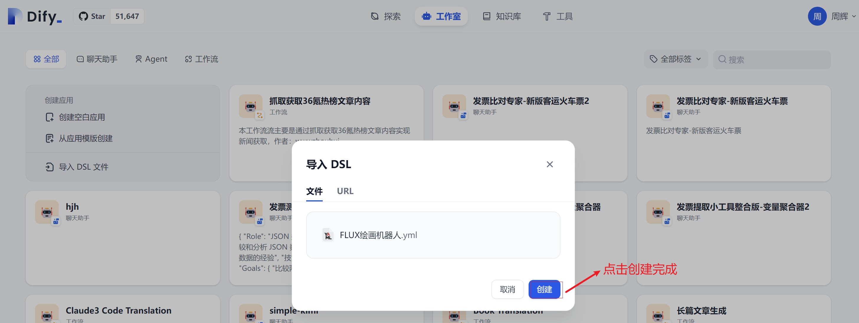 在创建应用-导入dsl