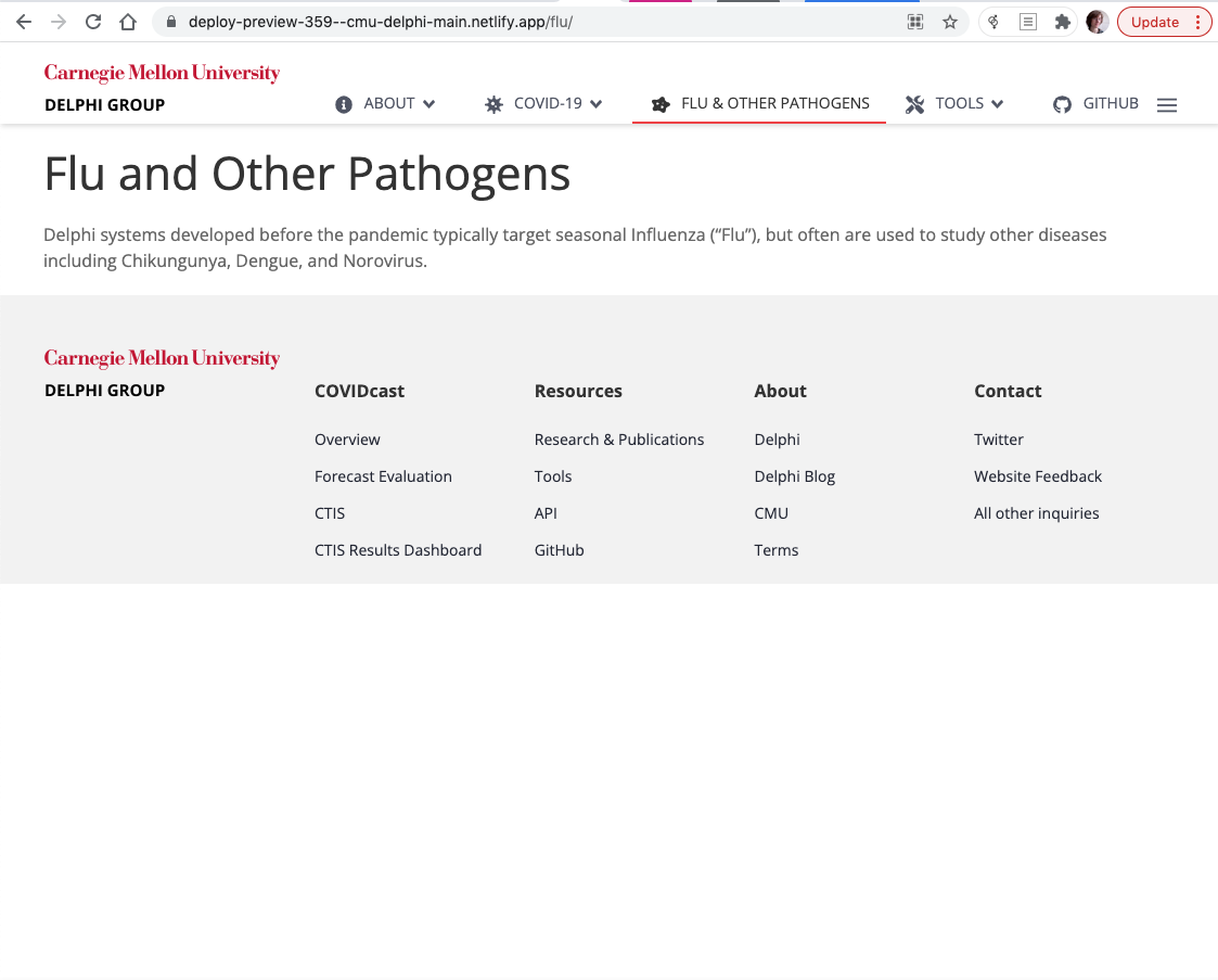 @krivard I resolved the conflicts. However, netlfy didn't bulid the latest update: https://app.netlify.com/sites/cmu-delphi-main/deploys. I don't why. Please check and test the website again before merging |