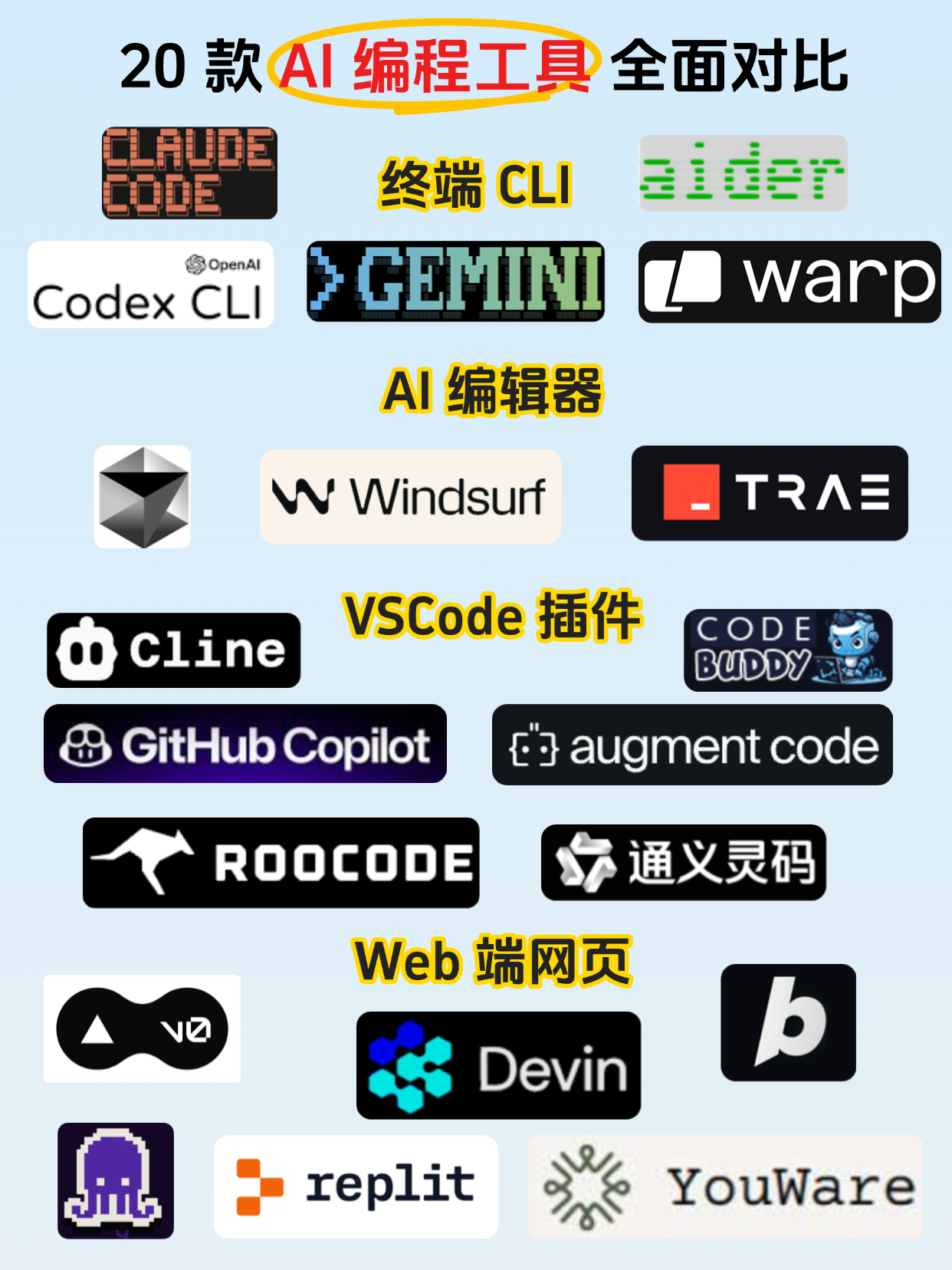 大家好,我是 luckySnail,截止到 2025 年 6 月底,AI 编程工具赛道已经是神仙打架了!这里面有 字节,阿里,谷歌,微软等大厂的产品,也有 Cursor,windsurf 这样的新星,下面我整理 20 + AI 编码辅助工具,让我们全面的对比这些工具,