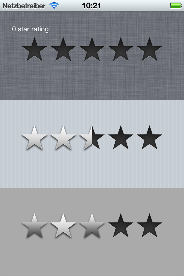 demo project in XCode and run it on your iPhone as well as in the Simulator. There's a DLStarRatingControl hooked up in DLStarRatingDemo.xib