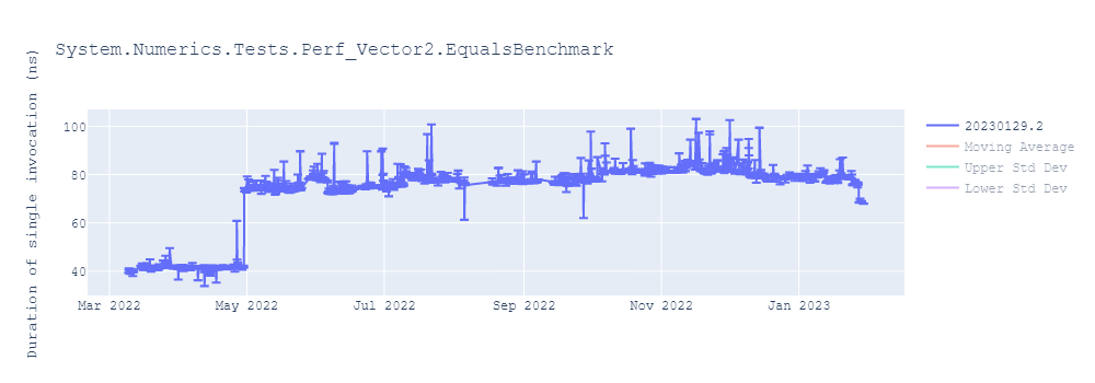IsChangePoint: Marked as a change because one of 12/9/2022 7:57:12 PM, 1/27/2023 11:36:27 AM, 1/30/2023 9:42:46 PM falls between 1/22/2023 2:59:30 AM and 1/30/2023 9:42:46 PM.