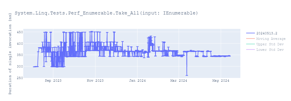 python3 .\performance\scripts\benchmarks_ci.py -f net8.0 --filter 'System.Linq.Tests.Perf_Enumerable*'System.Linq.Tests.Perf_Enumerable.Take_All(input: IEnumerable)
