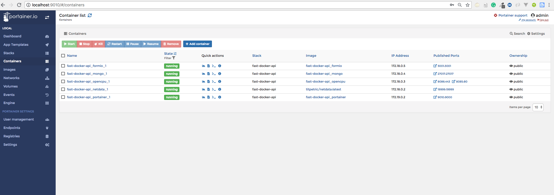 Want to check your full docker-compose cluster status? Go to Portainer localhost:9010