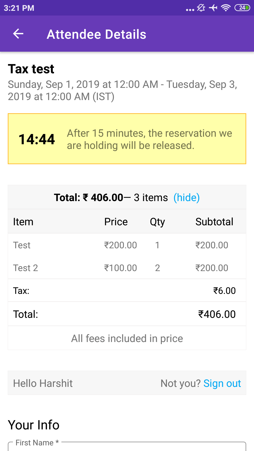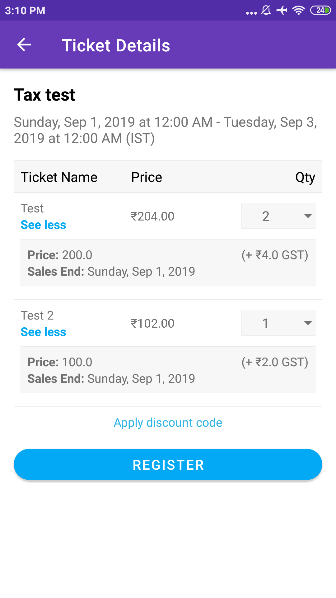 Thanks. Please also provide an example for countries where tax is included in the price. Check how this works in Europe on Eventbrite for example and also check the frontend, please. |