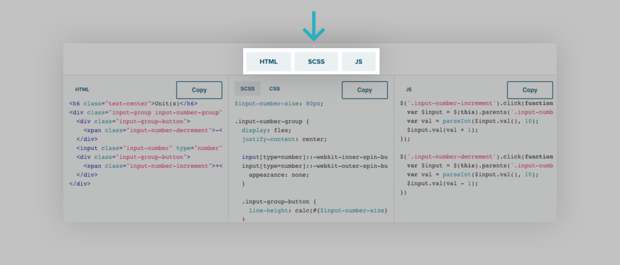 Like a Building Block? You can copy the HTML and CSS/SCSS and JS (if applicable) from the Building Block detail page. You’ll see a responsive preview and description at the top of the page. Below the preview you’ll find the code for the component.