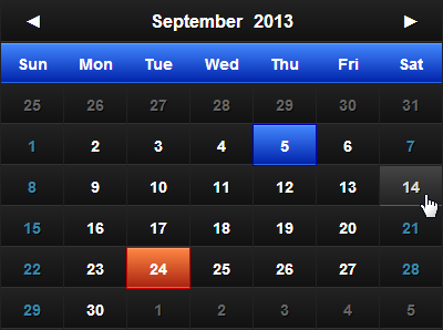 - Stylize current date, selected date, special dates and individual days of the week