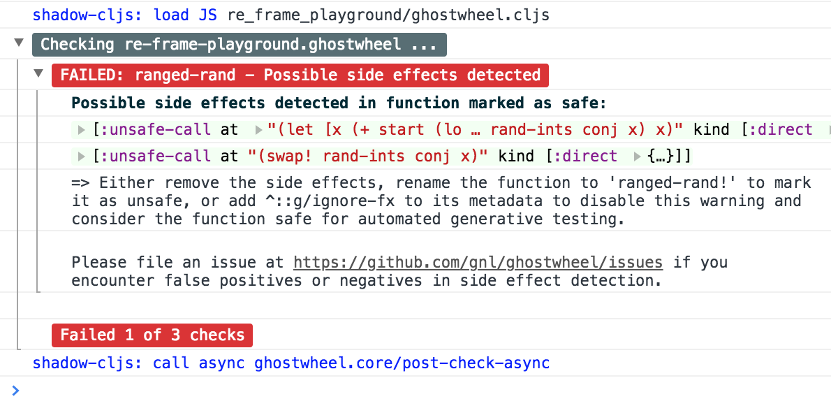 For a more solid environment - setup a playground project with something like re-frame, link your Ghostwheel repo under the checkouts