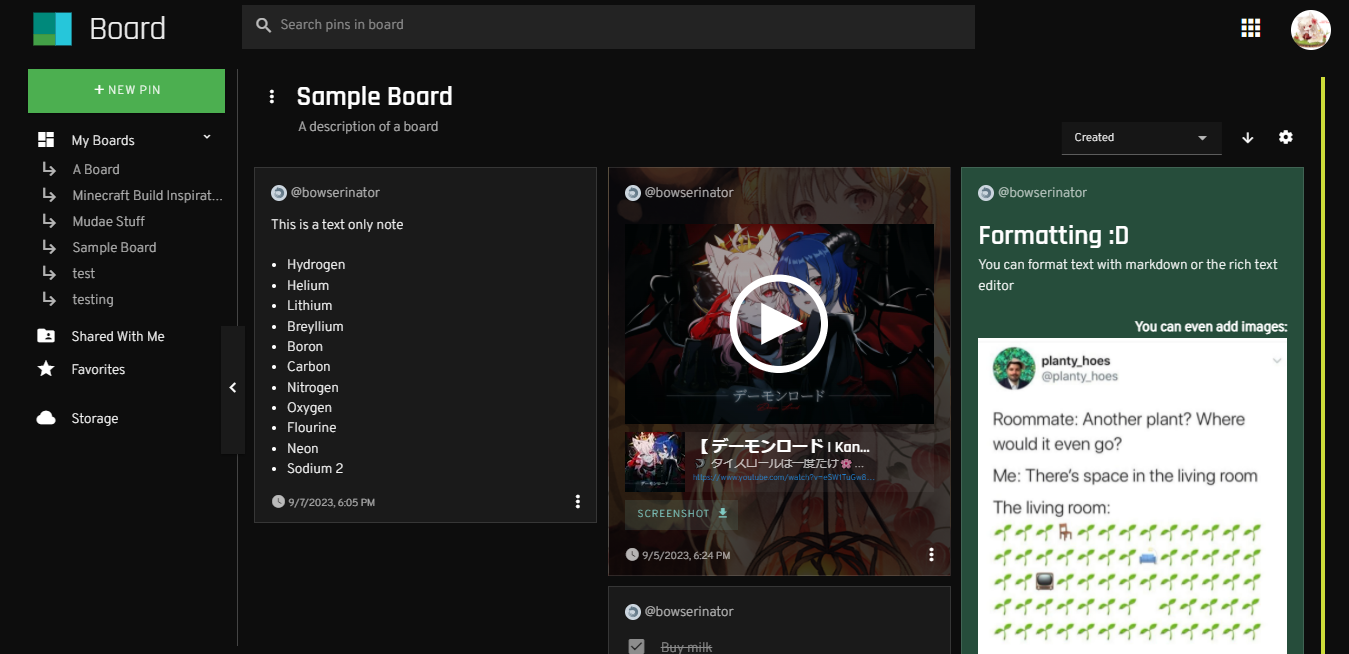 - Board: A pinterest / notes app for archiving websites, images, or just your own ideas, under