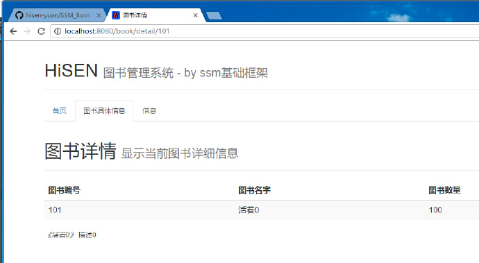 Book{bookId=101, name='活着0', number=100, detail='描述0'}