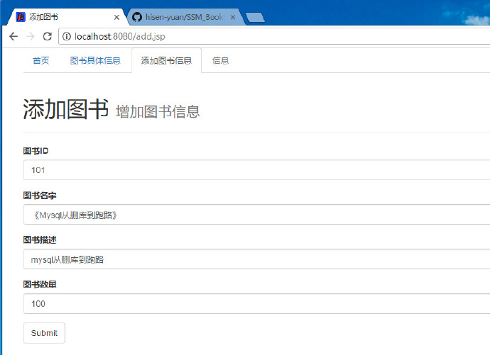 - 测试:addBook (由于没有预先准备数据,所以就先添加)