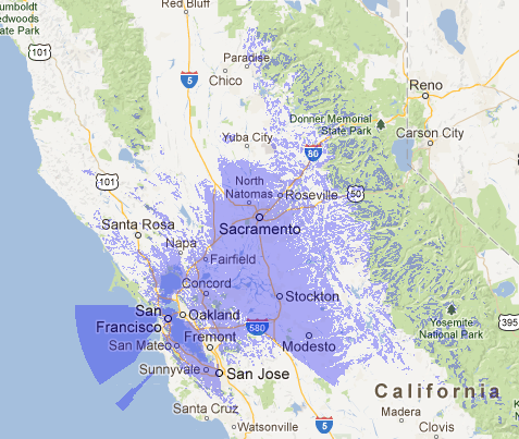 This is an example of a single viewshed from the summit of Mt. Diablo in California. It was created by another viewshed tool called Caltopo.