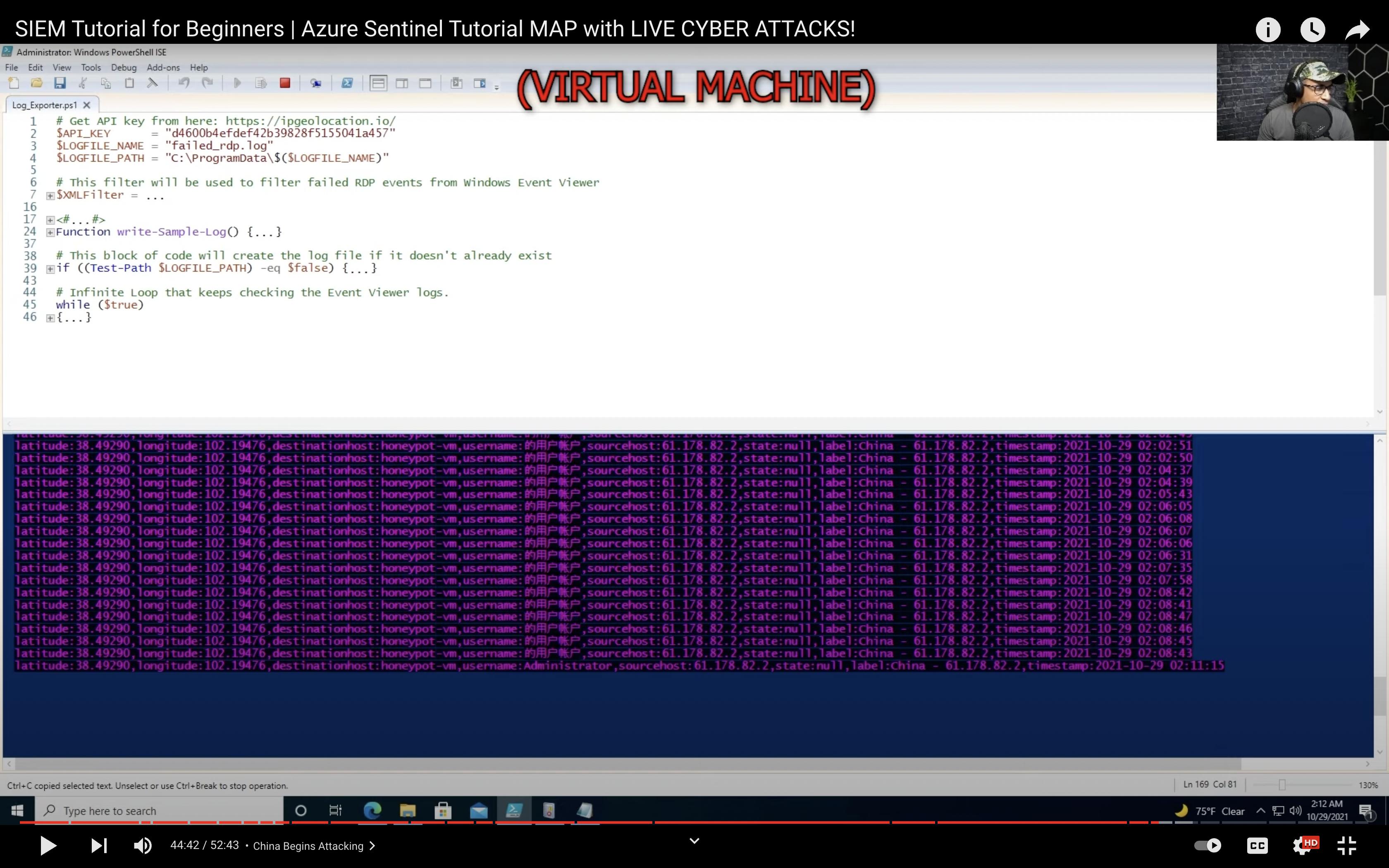 The script is used in this demo where I setup Azure Sentinel (SIEM) and connect it to a live virtual machine acting as a honey pot. We will observe live attacks (RDP Brute Force) from all around the world. I will use a custom PowerShell script to look up the attackers Geolocation information and plot it on an Azure Sentinel Map!