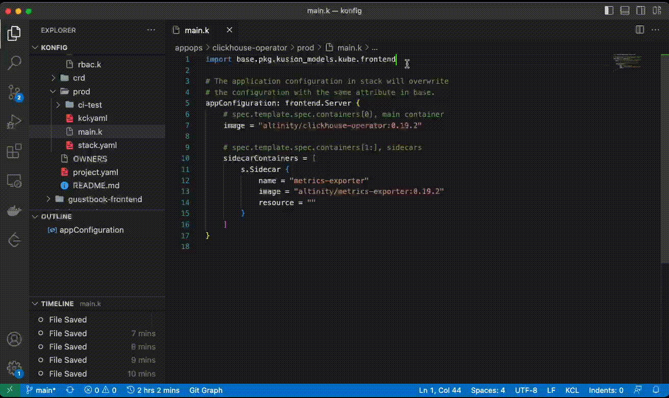 ) completion. - Outline: Main definition(schema def) and variables in KCL file