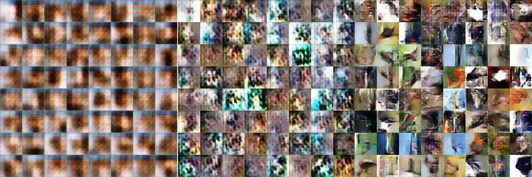 to train on CIFAR. This sets the network to train on 32x32 images instead of 64x64, and reads from the CIFAR binaries rather than from JPEGS.