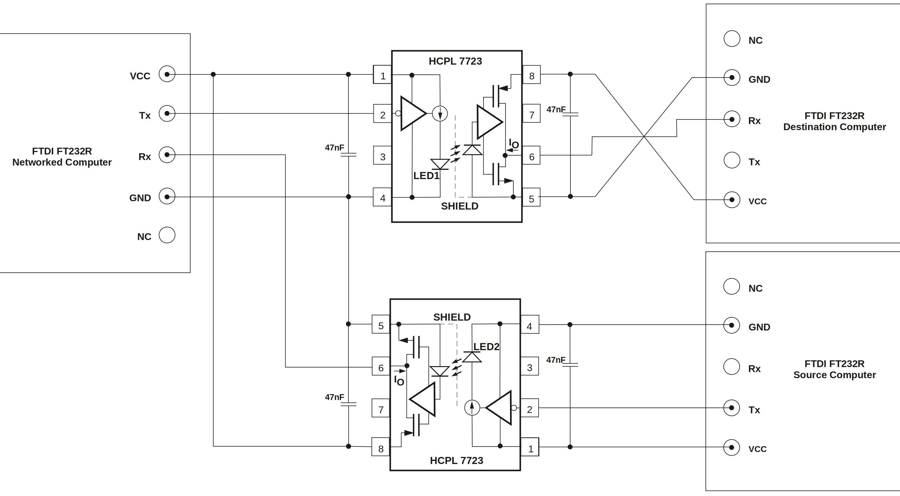The data diode is now complete. Connect the data diode between Source, Destination, and Networked Computer.