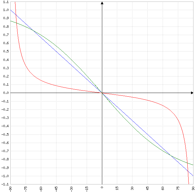 });The following graph plots the linear (blue), natural (red), and gaussian (green) alogrithm for motionAngleX: 85: